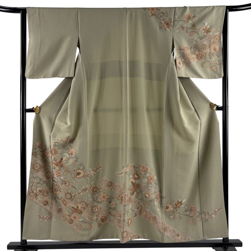 【訪問着】 灰色系 灰緑 名品 B 約150cm~約159cm 裄丈63cm-64cm (M)size 袖丈48cm 9990-29990 二万以下