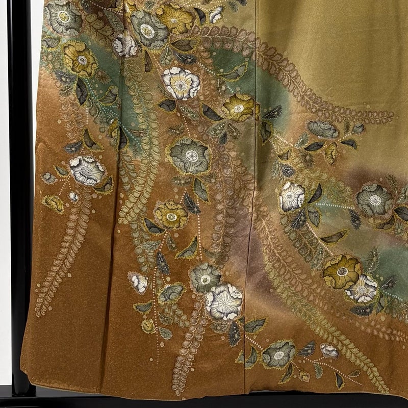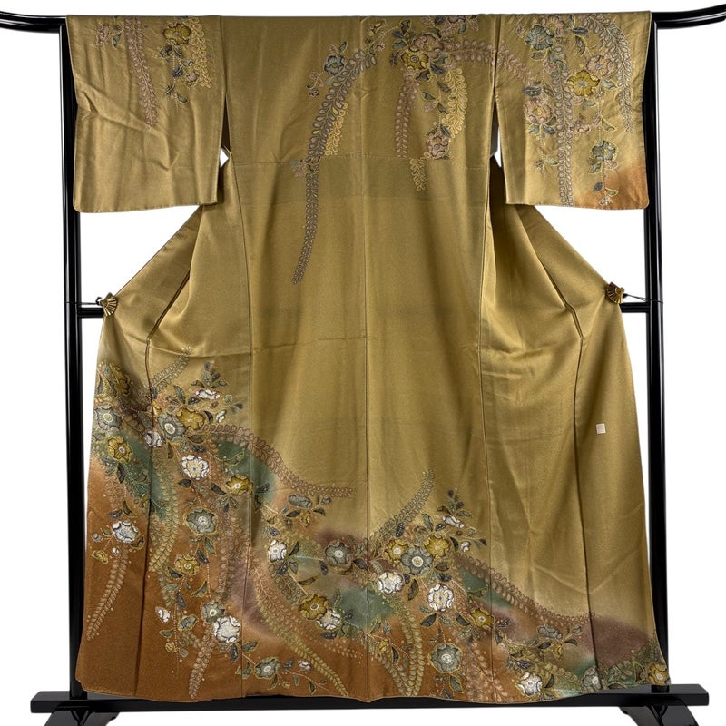 【訪問着】 黄色系 黄土色 名品 A 約150cm~約159cm 裄丈65cm (M)size 袖丈46cm以下 9990-29990 美品 二万以下