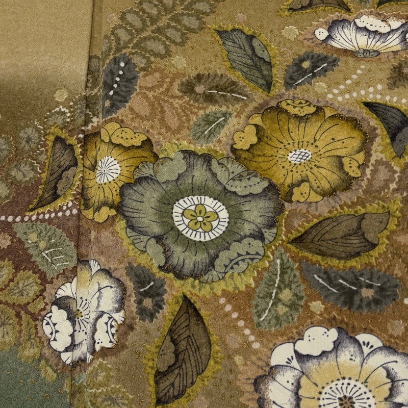 【着物ランク】名品 【素材】正絹 【身丈】約158cm 【裄丈】約65.5cm 【袖丈】約46cm 【袖幅】約34cm 【前幅】約24cm 【後幅】約30.5cm 【サイズ】M 【着物仕立て】袷 【着用時期】10~5月 【状態ランク】ランクA 【着物着用シーン】披露宴、パーティー、お見合い、式典、茶会
