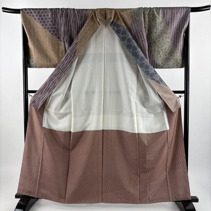 【訪問着】 茶系 薄茶色 名品 A 約160cm~約169cm 裄丈67cm-68cm (L)size 袖丈48cm 9990-29990 美品 二万以下