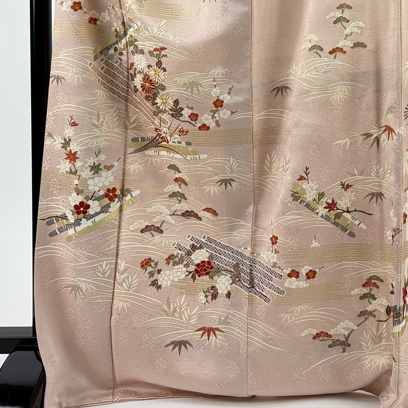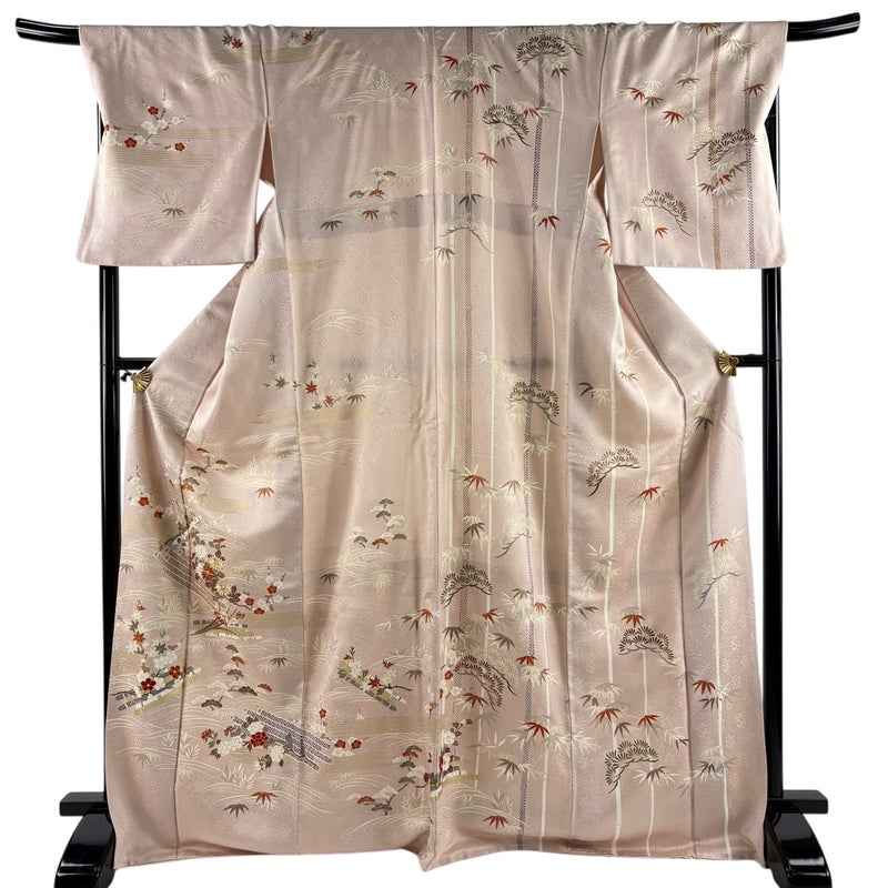 【着物ランク】名品 【素材】正絹 【身丈】約171cm 【裄丈】約69.5cm 【袖丈】約51cm 【袖幅】約35cm 【前幅】約25cm 【後幅】約31cm 【サイズ】L 【着物仕立て】袷 【着用時期】10~5月 【状態ランク】ランクB 【着物着用シーン】披露宴、パーティー、お見合い、式典、茶会