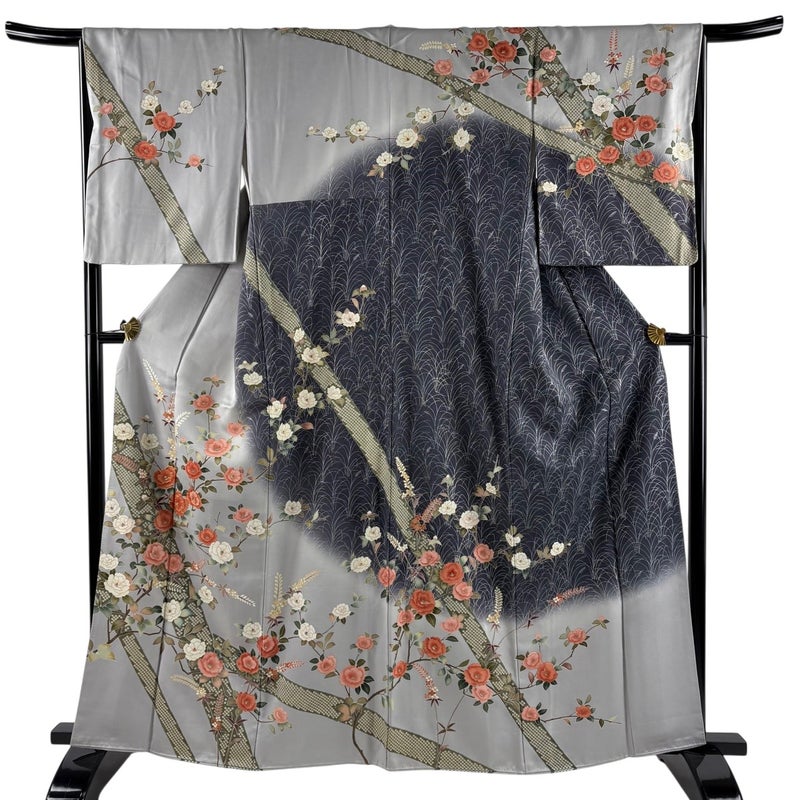 【訪問着】 灰色系 灰色 名品 C 約160cm~約169cm 裄丈66cm (M)size 袖丈50cm-60cm 9990-29990 二万以下