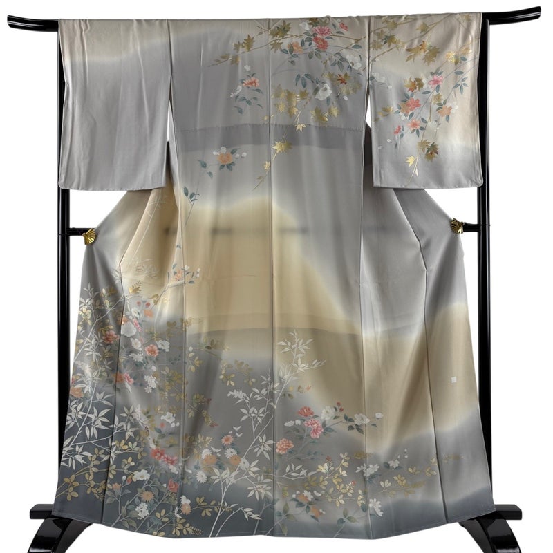 【訪問着】 灰色系 灰色 名品 B 約160cm~約169cm 裄丈66cm (M)size 袖丈50cm-60cm 9990-29990 二万以下