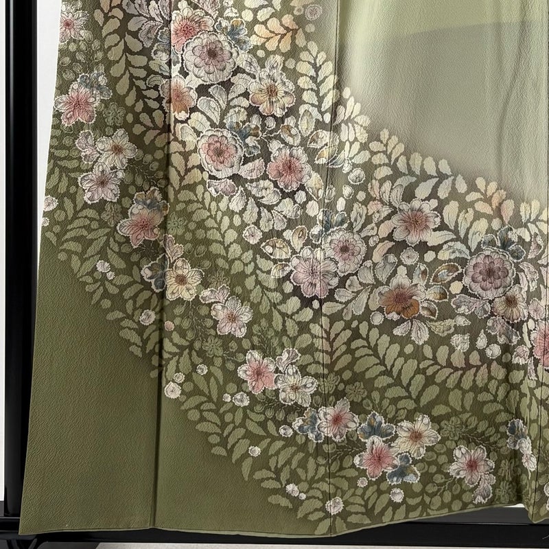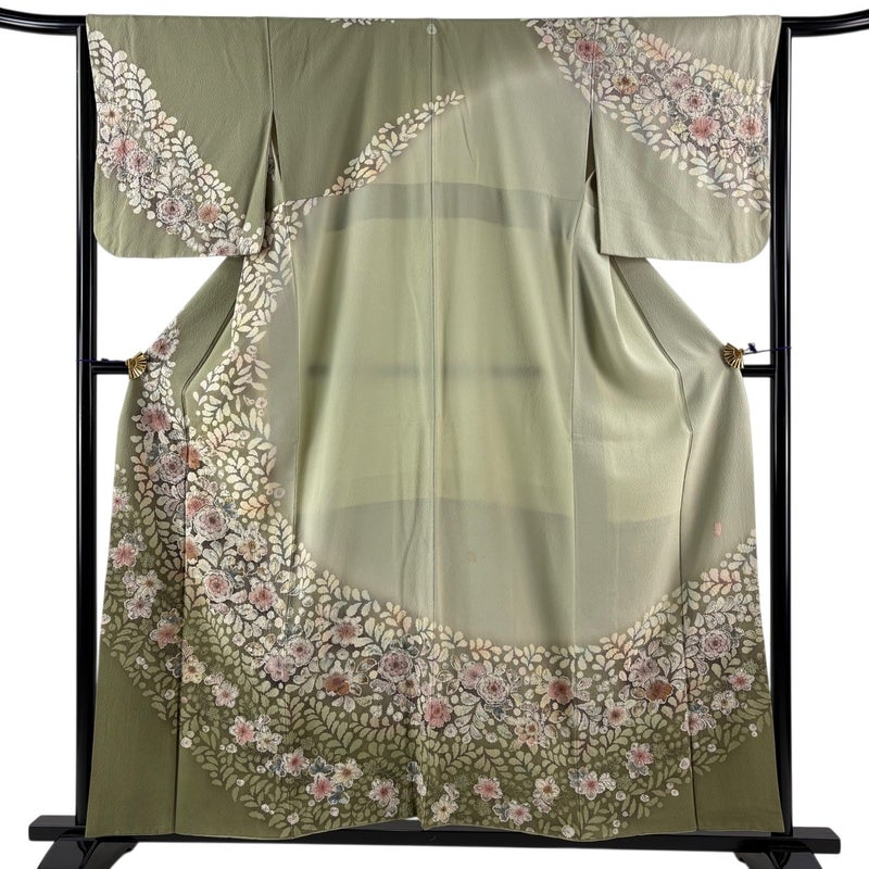 【訪問着】 灰色系 灰緑 名品 C 約150cm~約159cm 裄丈65cm (M)size 袖丈47cm 9990-29990 二万以下