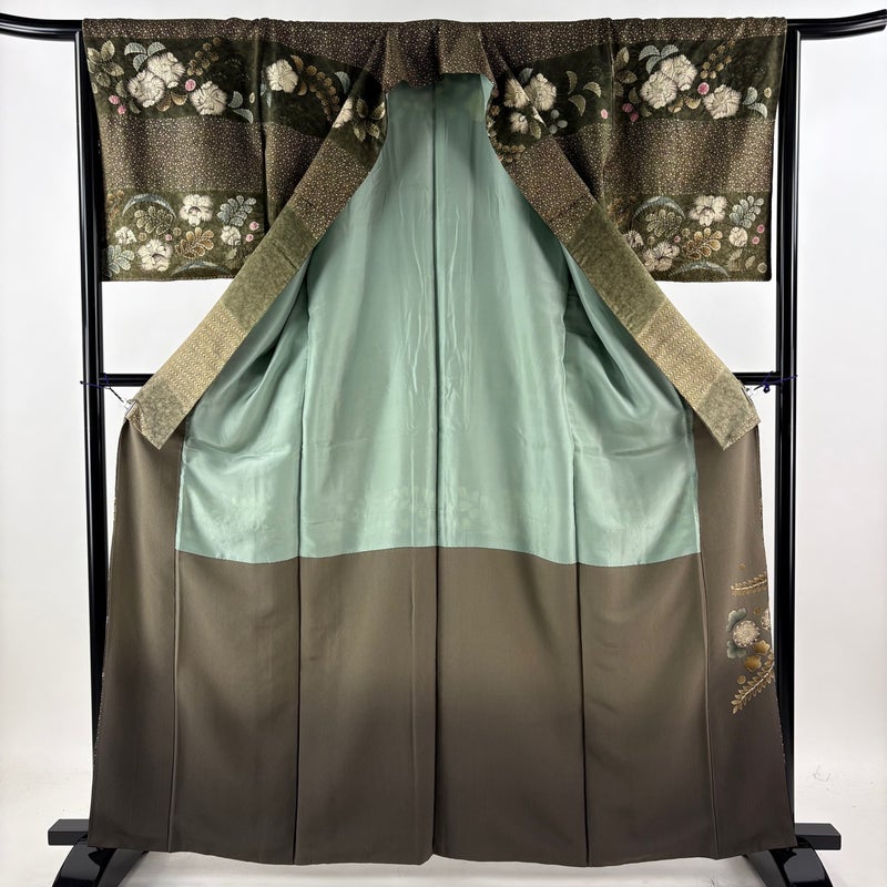 【訪問着】 茶系 茶緑色 名品 B 約160cm~約169cm 裄丈65cm (M)size 袖丈49cm 9990-29990 二万以下