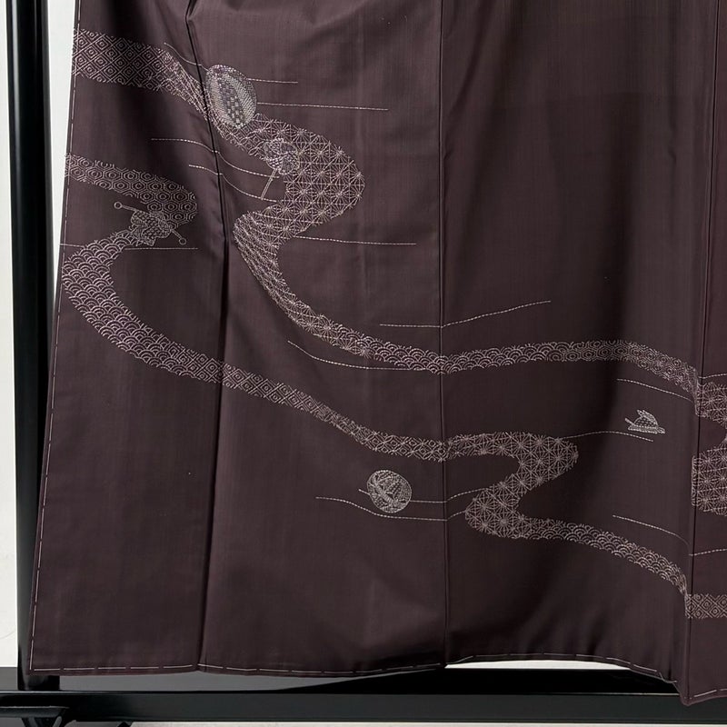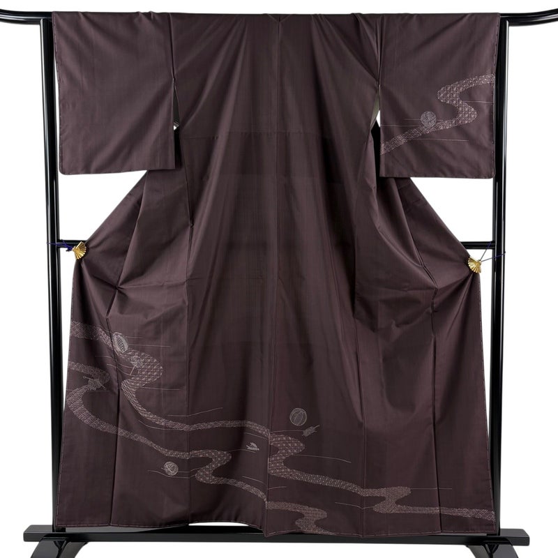【訪問着】 茶系 茶紫 名品 A 約150cm~約159cm 裄丈65cm (M)size 袖丈49cm 9990-29990 美品 二万以下