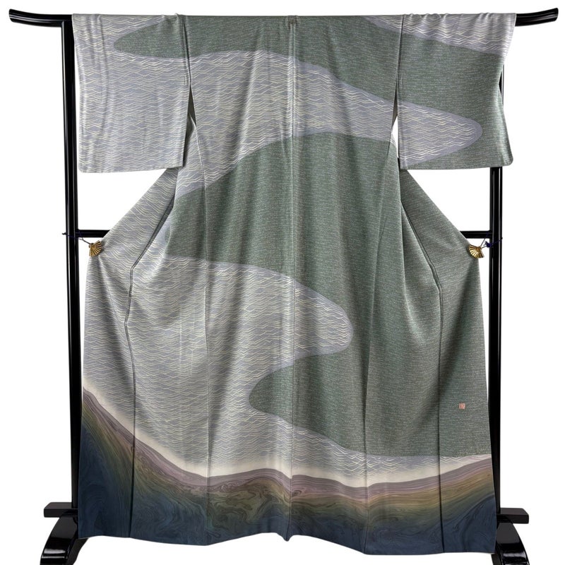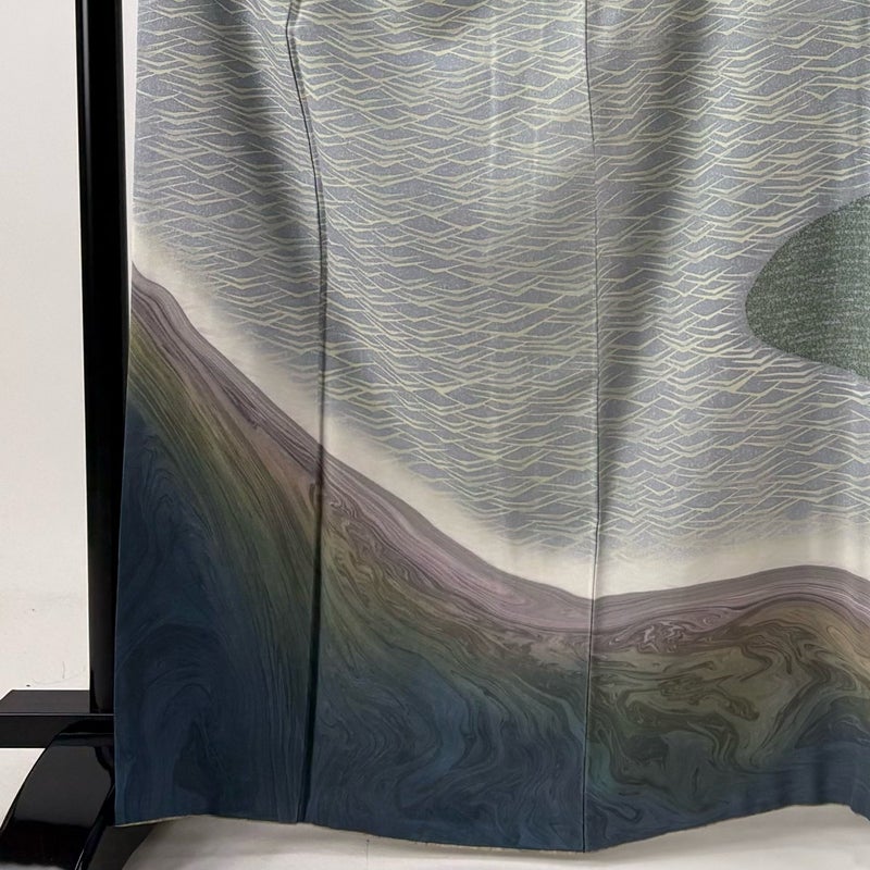 【着物ランク】名品 【素材】正絹 【身丈】約165cm 【裄丈】約68.5cm 【袖丈】約49cm 【袖幅】約34.5cm 【前幅】約25cm 【後幅】約30cm 【サイズ】L 【着物仕立て】袷 【着用時期】10~5月 【状態ランク】ランクA 【着物着用シーン】披露宴、パーティー、お見合い、式典、茶会