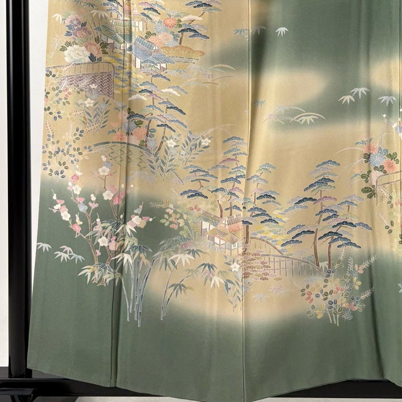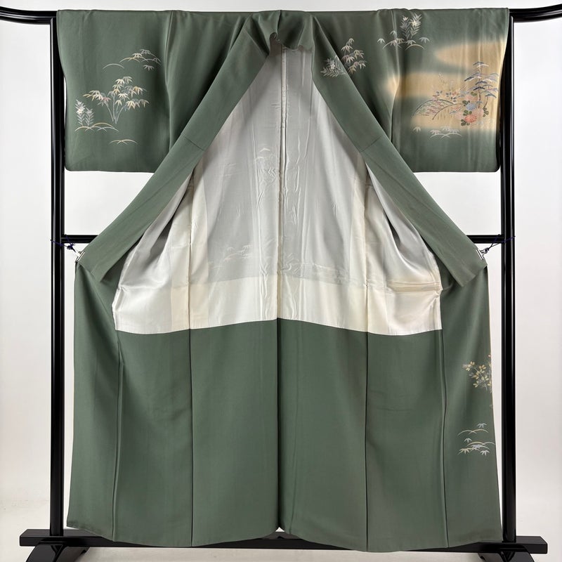 【訪問着】 灰色系 灰緑 名品 B 約150cm~約159cm 裄丈63cm-64cm (M)size 袖丈47cm 9990-29990 二万以下