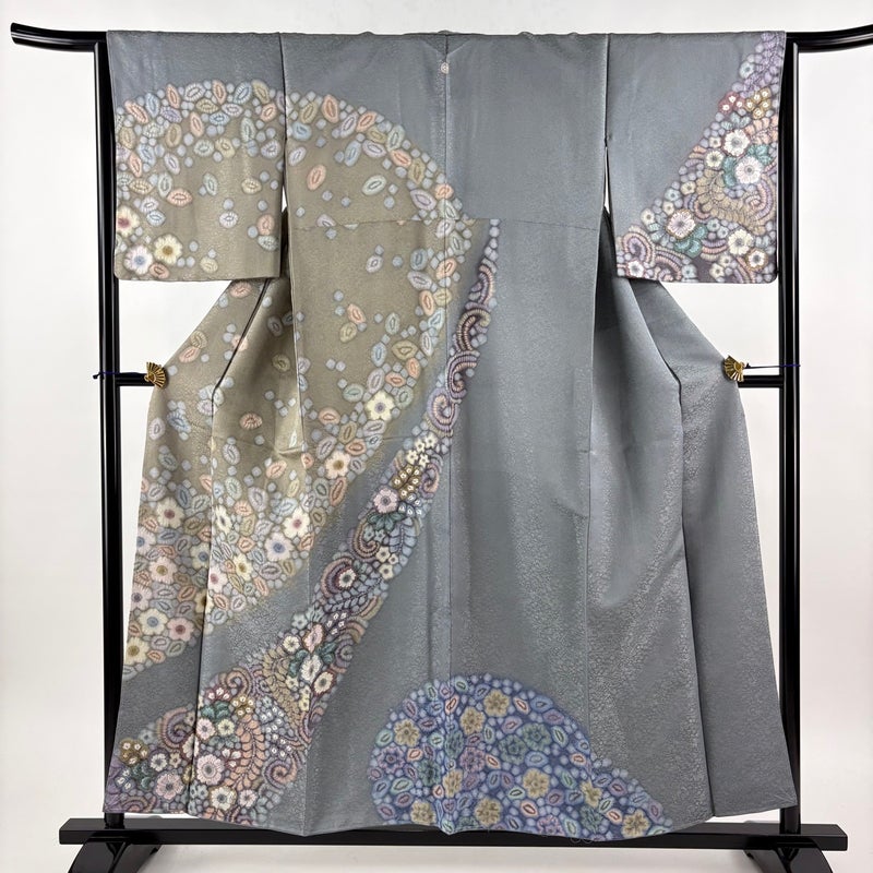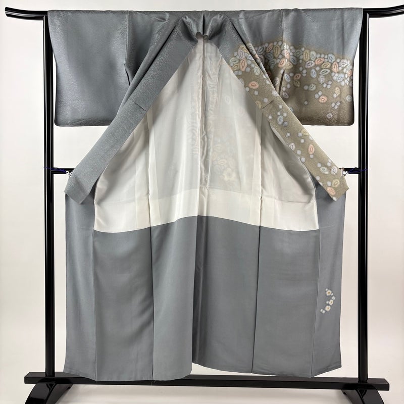 【訪問着】 灰色系 灰茶 名品 A 約150cm~約159cm 裄丈63cm-64cm (M)size 袖丈49cm 9990-29990 美品 二万以下