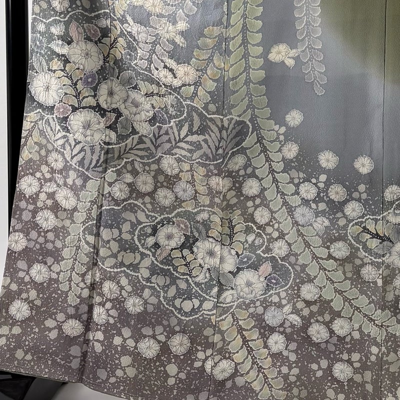 【訪問着】 灰色系 灰緑 名品 B 約160cm~約169cm 裄丈66cm (M)size 袖丈49cm 9990-29990 二万以下