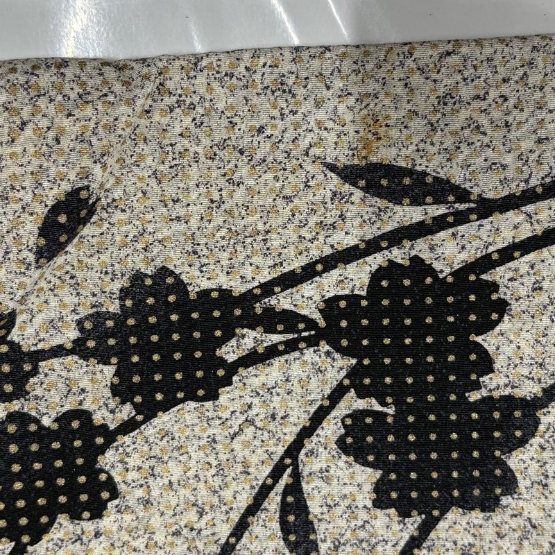 帯次第で幅広くお使いいただける素敵な訪問着です。 帯により格式を変える事の出来る印象のお着物は、様々に場面で活躍してくれることでしょう。 表地所々にヤケ、表地所々と後身頃の背中付近と左前袖所々と左胸と左衿にシミ、衿周りや両袖口中に汚れがございます。 裏地所々にシワ、衿裏と胴裏に黄変、胴裏背中心に縫い目のゆるみがございます。 また、上前から後身頃にかけて柄のズレがございます。 ご購入の際はその点ご留意ください。 ※なお、厳しく商品の状態確認を行っておりますが、記載の汚れ以外にも見落とし箇所がある可能性がある旨ご了承いただけますと幸いです。 沢山の商品の中からご覧いただき誠にありがとうございます。 【PR2】