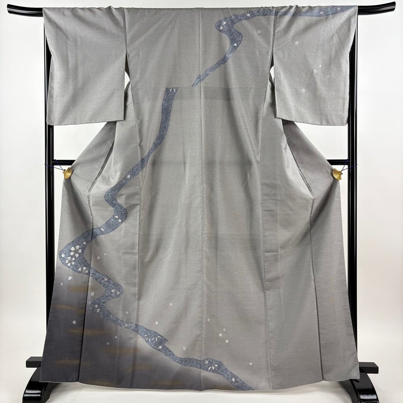 【訪問着】 灰色系 灰色 秀品 B 約160cm~約169cm 裄丈67cm-68cm (M)size 袖丈50cm-60cm 7990-9980 二万以下