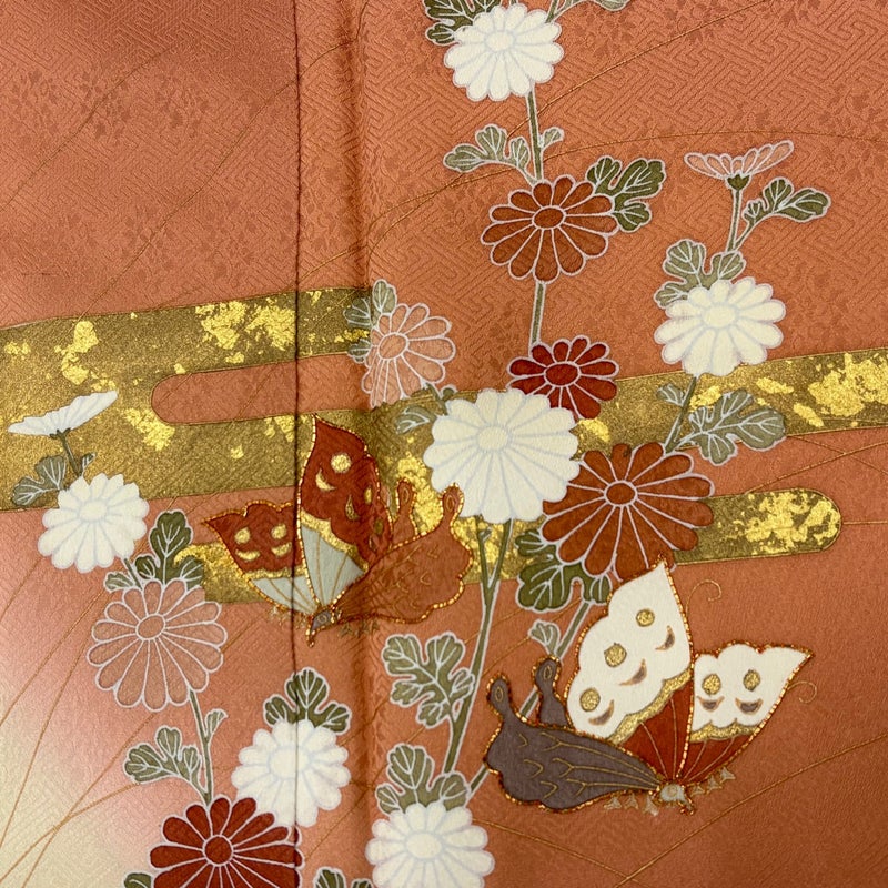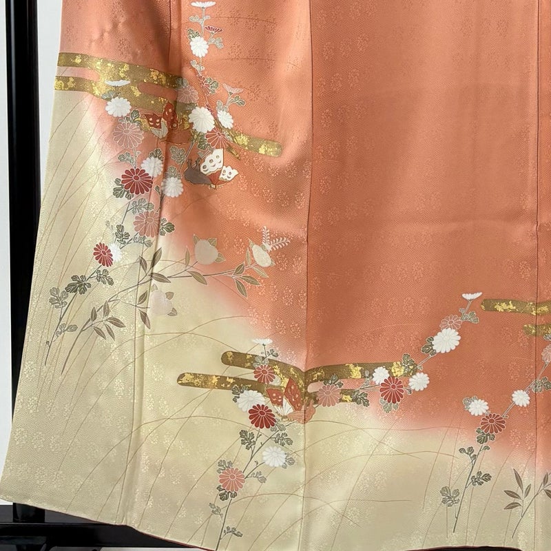 【訪問着】 赤系 薄オレンジ 秀品 B 約150cm~約159cm 裄丈66cm (M)size 袖丈49cm 7990-9980 二万以下