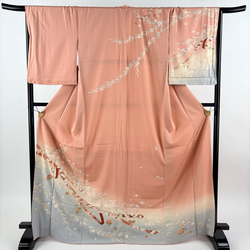 【訪問着】 赤系 ピンク 秀品 B 約160cm~約169cm 裄丈66cm (M)size 袖丈50cm-60cm 7990-9980 二万以下