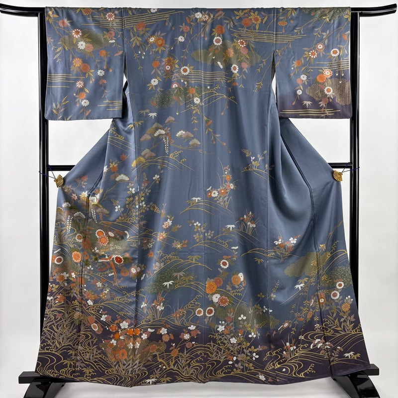 【訪問着】 灰色系 青灰色 秀品 B 約160cm~約169cm 裄丈63cm-64cm (S)size 袖丈48cm 7990-9980 二万以下