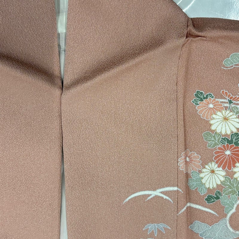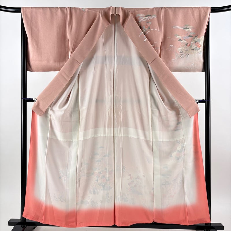 【訪問着】 赤系 サーモンピンク 秀品 C 約150cm~約159cm 裄丈67cm-68cm (M)size 袖丈46cm以下 7990-9980 二万以下