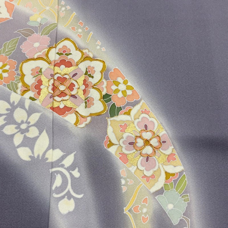 【訪問着】 灰色系 灰紫 秀品 B 約150cm~約159cm 裄丈66cm (M)size 袖丈46cm以下 7990-9980 二万以下