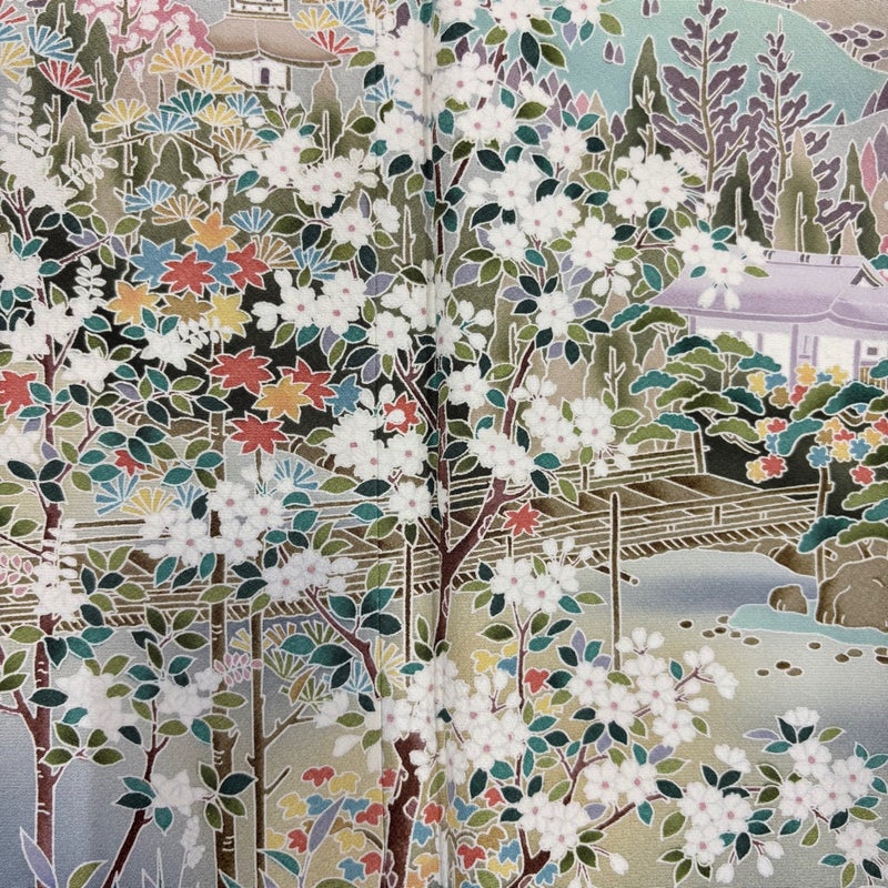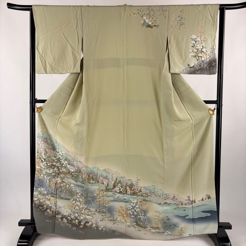 【訪問着】 灰色系 灰緑 秀品 B 約160cm~約169cm 裄丈63cm-64cm (S)size 袖丈48cm 7990-9980 二万以下