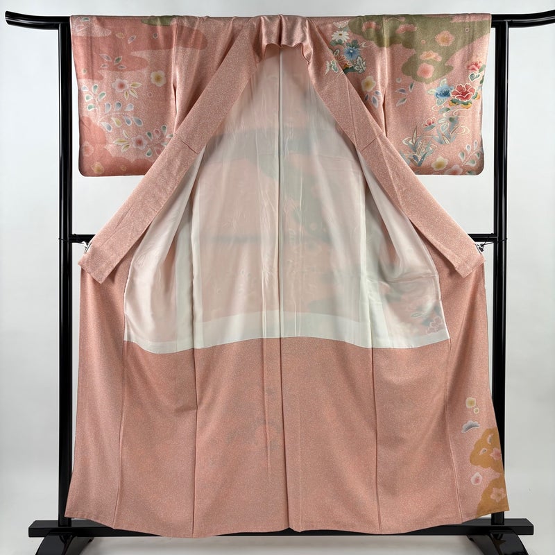 【着物ランク】秀品 【素材】正絹 【身丈】約158.5cm 【裄丈】約62.5cm 【袖丈】約48cm 【袖幅】約33cm 【前幅】約24cm 【後幅】約30cm 【サイズ】S 【着物仕立て】袷 【着用時期】10~5月 【状態ランク】ランクB 【着物着用シーン】披露宴、パーティー、お見合い、式典、茶会
