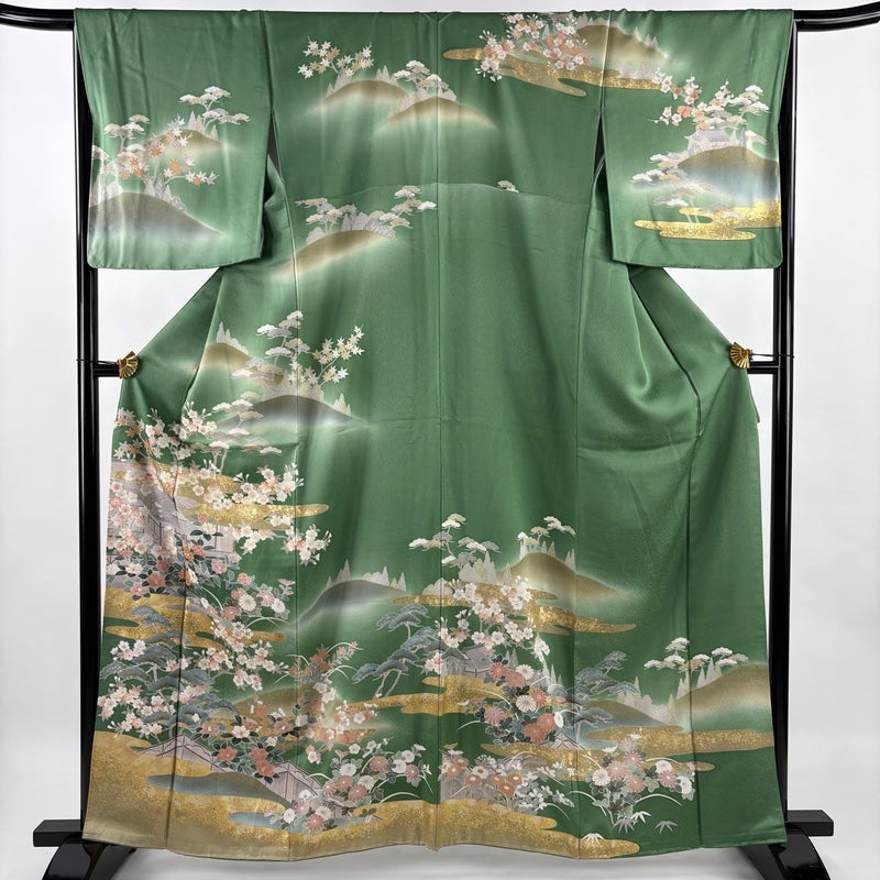 【訪問着】 緑系 緑 秀品 B 約160cm~約169cm 裄丈66cm (M)size 袖丈48cm 7990-9980 二万以下