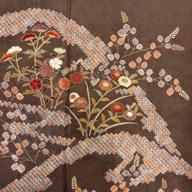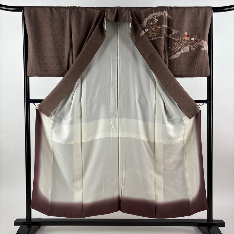 【訪問着】 茶系 茶紫 秀品 C 約150cm~約159cm 裄丈65cm (M)size 袖丈50cm-60cm 7990-9980 二万以下