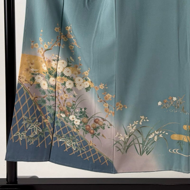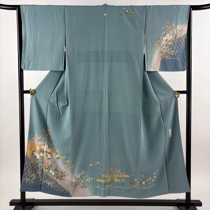 【訪問着】 灰色系 青灰色 秀品 B 約150cm~約159cm 裄丈63cm-64cm (M)size 袖丈50cm-60cm 7990-9980 二万以下