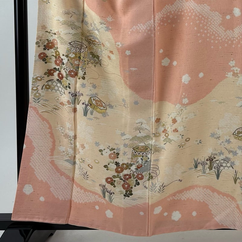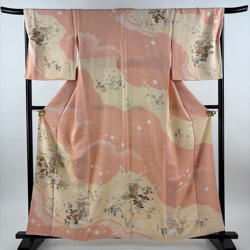 【訪問着】 赤系 ピンク 秀品 B 約150cm~約159cm 裄丈69cm以上 (L)size 袖丈50cm-60cm 7990-9980 二万以下