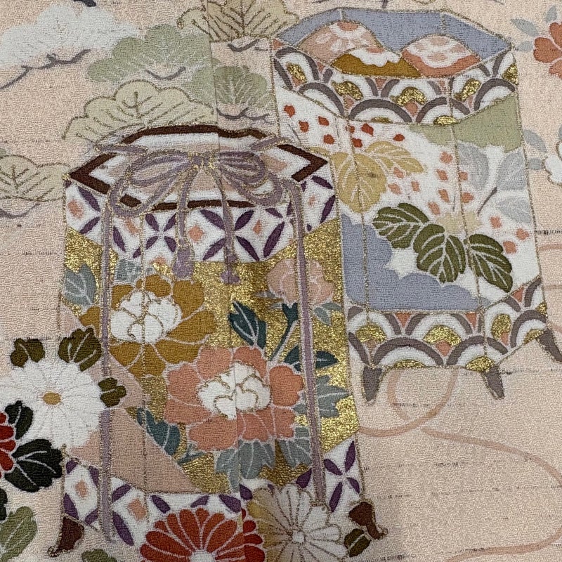 【着物ランク】秀品 【素材】正絹 【身丈】約159cm 【裄丈】約69cm 【袖丈】約50cm 【袖幅】約35cm 【前幅】約25cm 【後幅】約29cm 【サイズ】L 【着物仕立て】袷 【着用時期】10~5月 【状態ランク】ランクB 【着物着用シーン】披露宴、パーティー、お見合い、式典、茶会