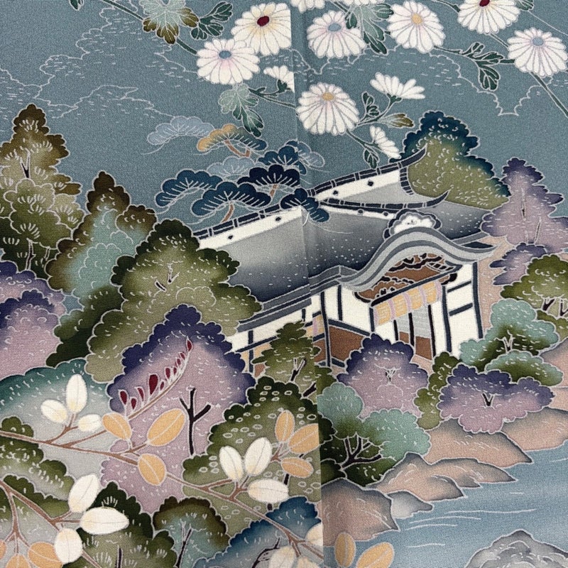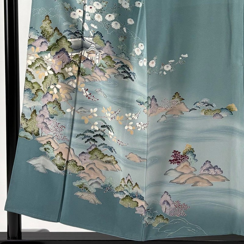 【訪問着】 青系 青緑 秀品 B 約150cm~約159cm 裄丈63cm-64cm (S)size 袖丈46cm以下 7990-9980 二万以下
