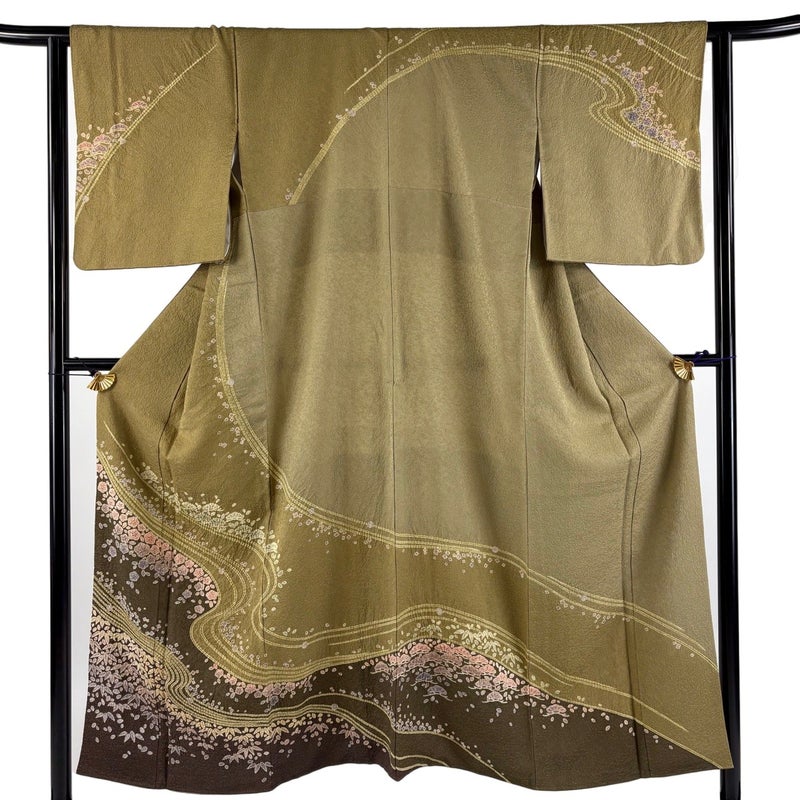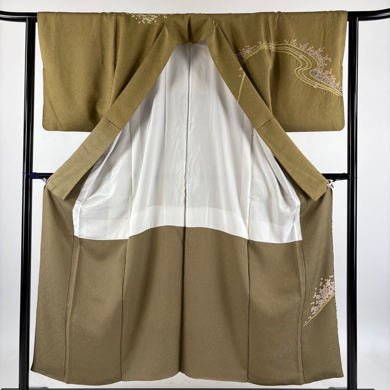 【訪問着】 茶系 茶緑色 名品 A 約150cm~約159cm 裄丈62cm以下 (S)size 袖丈48cm 9990-29990 美品 二万以下