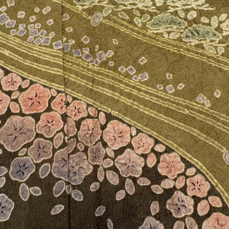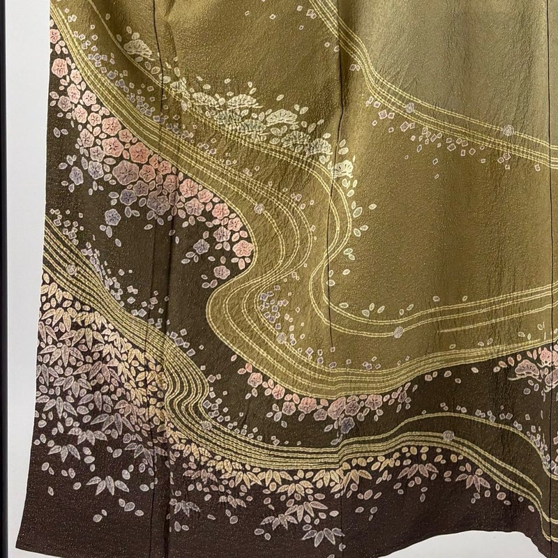 【着物ランク】名品 【素材】正絹 【身丈】約152.5cm 【裄丈】約62cm 【袖丈】約48.5cm 【袖幅】約32.5cm 【前幅】約23cm 【後幅】約31cm 【サイズ】S 【着物仕立て】袷 【着用時期】10~5月 【状態ランク】ランクA 【着物着用シーン】披露宴、パーティー、お見合い、式典、茶会