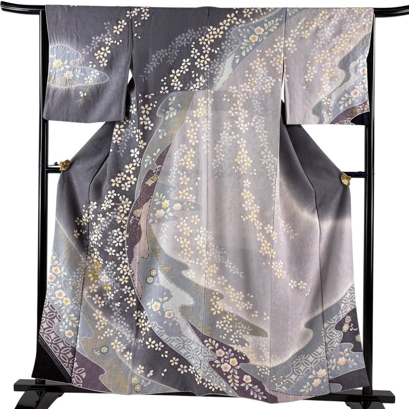 【訪問着】 灰色系 灰紫 名品 B 約150cm~約159cm 裄丈65cm (M)size 袖丈48cm 9990-29990 二万以下