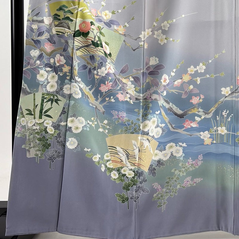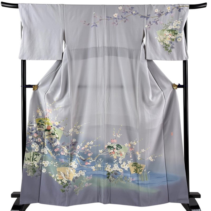 【訪問着】 灰色系 青灰色 名品 B 約160cm~約169cm 裄丈67cm-68cm (L)size 袖丈48cm 9990-29990 二万以下