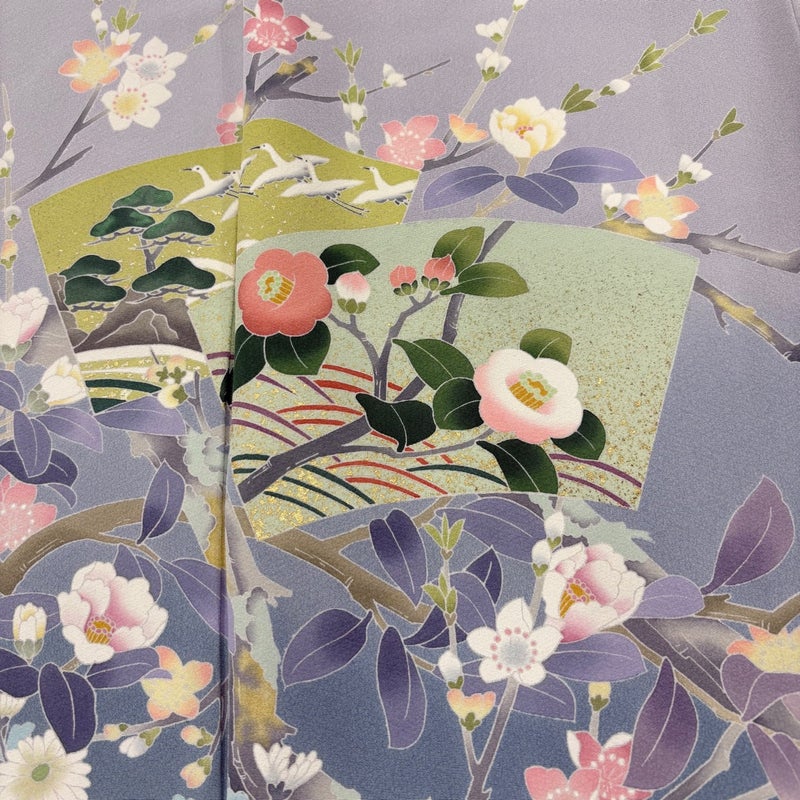 【着物ランク】名品 【素材】正絹 【身丈】約165cm 【裄丈】約68.5cm 【袖丈】約48cm 【袖幅】約35.5cm 【前幅】約24cm 【後幅】約30.5cm 【サイズ】L 【着物仕立て】袷 【着用時期】10~5月 【状態ランク】ランクB 【着物着用シーン】披露宴、パーティー、お見合い、式典、茶会