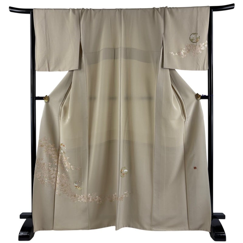 【訪問着】 白系 ベージュ 逸品 A 約160cm~約169cm 裄丈69cm以上 (L)size 袖丈47cm 30000- 美品 五万以上