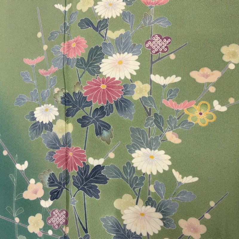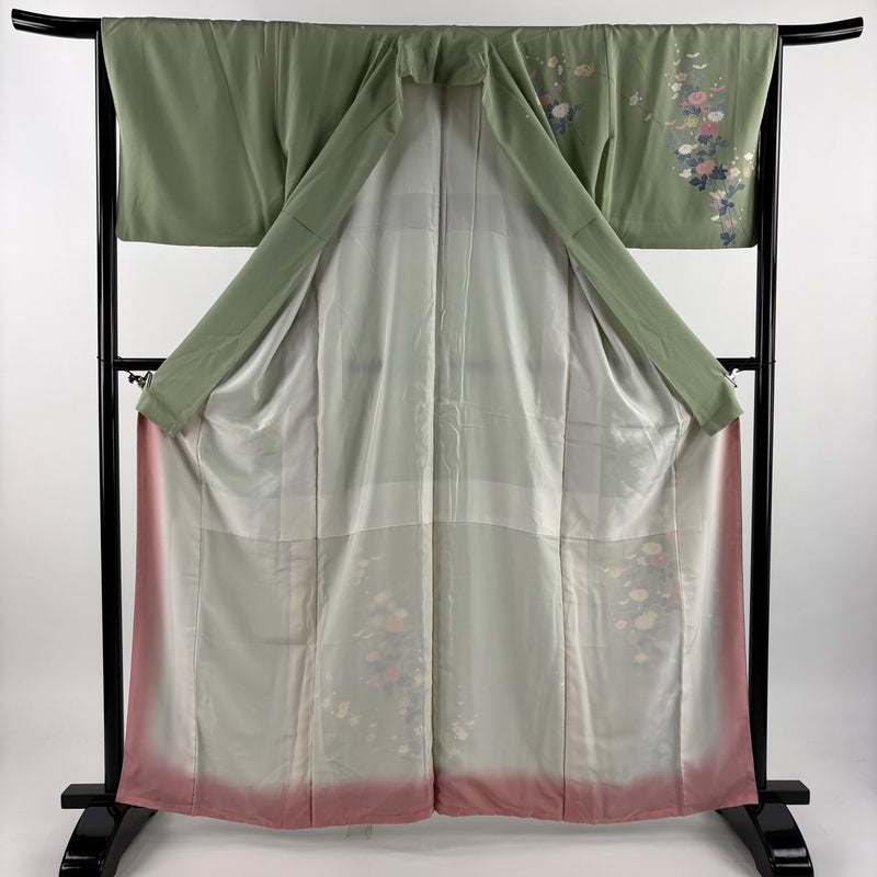 【訪問着】 緑系 薄緑 秀品 B 約160cm~約169cm 裄丈65cm (M)size 袖丈46cm以下 7990-9980 二万以下