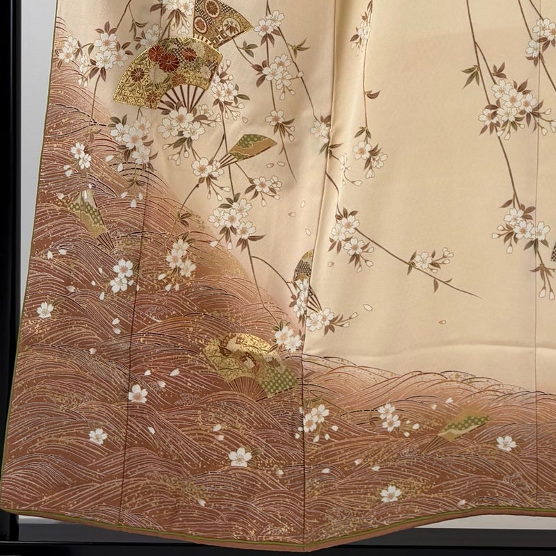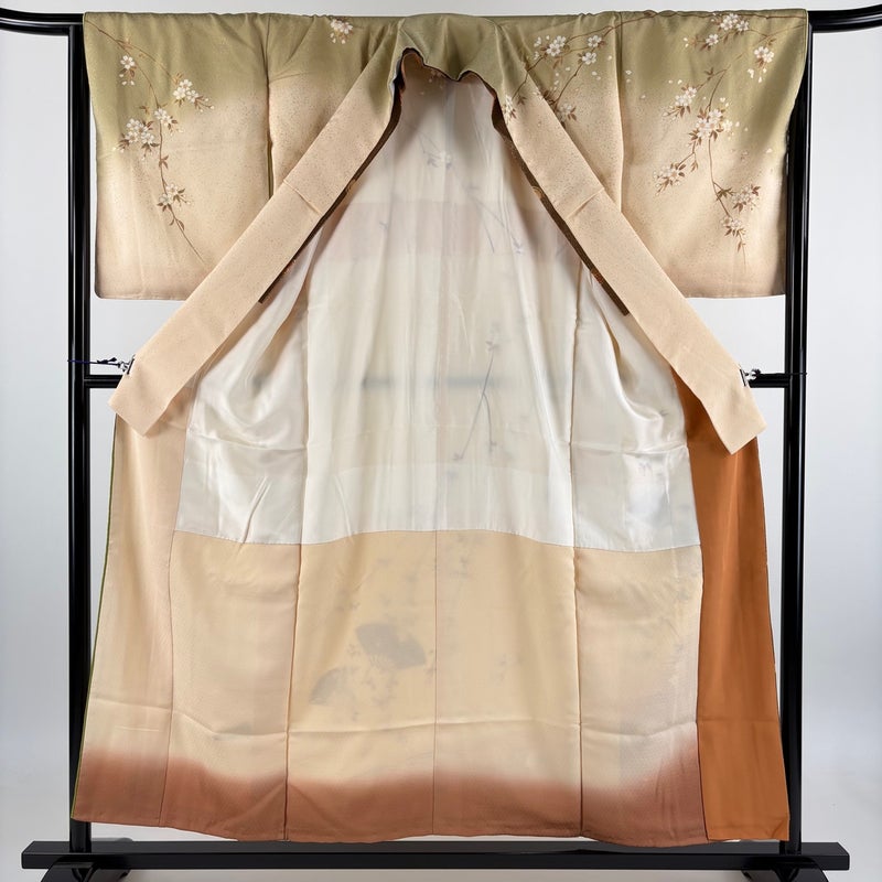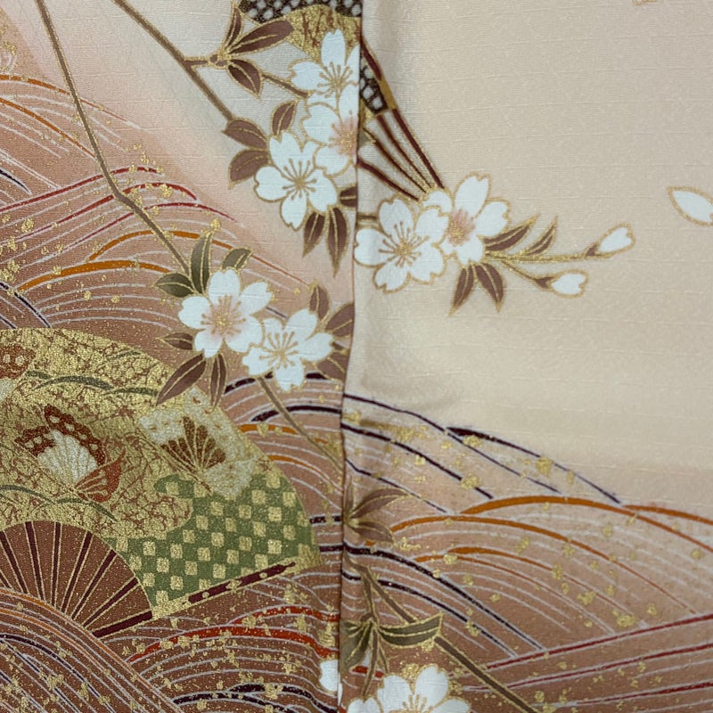 【着物ランク】秀品 【素材】正絹 【身丈】約155cm 【裄丈】約65cm 【袖丈】約52cm 【袖幅】約34cm 【前幅】約23cm 【後幅】約29cm 【サイズ】M 【着物仕立て】袷 【着用時期】10~5月 【状態ランク】ランクB 【着物着用シーン】披露宴、パーティー、お見合い、式典、茶会