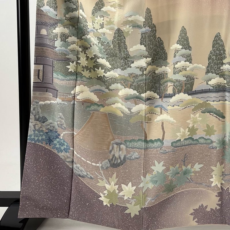 【着物ランク】秀品 【素材】正絹 【身丈】約164.5cm 【裄丈】約68cm 【袖丈】約51cm 【袖幅】約35cm 【前幅】約24.5cm 【後幅】約29.5cm 【サイズ】L 【着物仕立て】袷 【着用時期】10~5月 【状態ランク】ランクA 【着物着用シーン】披露宴、パーティー、お見合い、式典、茶会