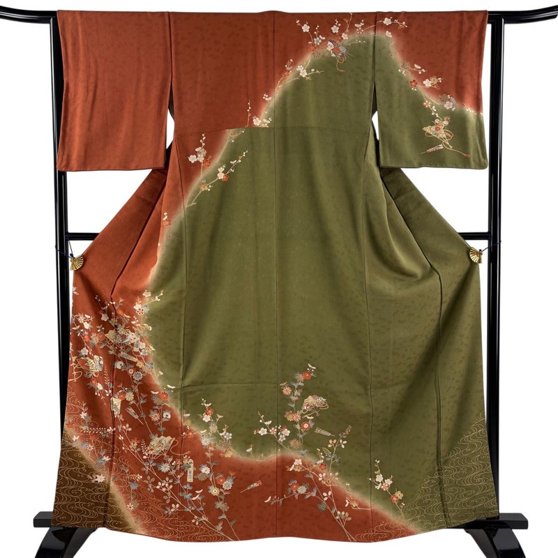 【訪問着】 赤系 赤茶 秀品 B 約160cm~約169cm 裄丈63cm-64cm (S)size 袖丈49cm 4000-7980 二万以下