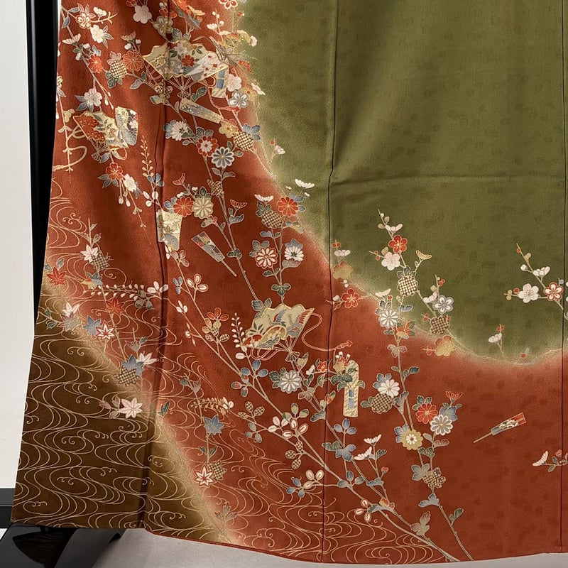 【着物ランク】秀品 【素材】正絹 【身丈】約162.5cm 【裄丈】約63cm 【袖丈】約49.5cm 【袖幅】約32.5cm 【前幅】約24cm 【後幅】約30cm 【サイズ】S 【着物仕立て】袷 【着用時期】10~5月 【状態ランク】ランクB 【着物着用シーン】披露宴、パーティー、お見合い、式典、茶会