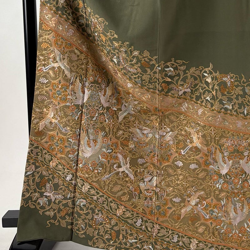 【訪問着】 緑系 鶯色 秀品 B 約160cm~約169cm 裄丈67cm-68cm (L)size 袖丈48cm 7990-9980 二万以下