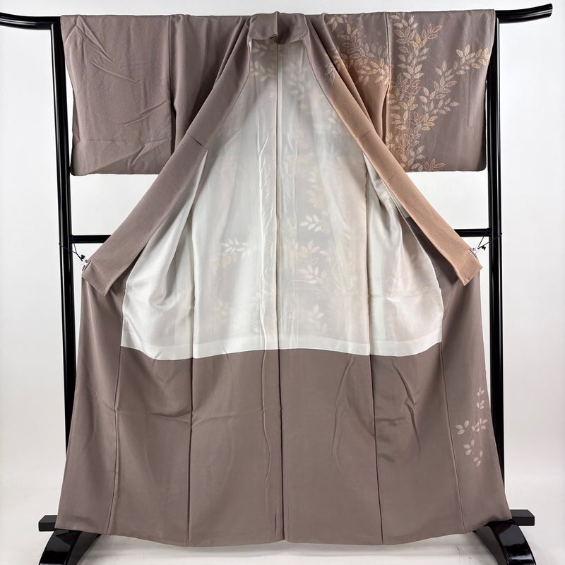 【訪問着】 赤系 ピンクベージュ 秀品 B 約160cm~約169cm 裄丈63cm-64cm (M)size 袖丈48cm 7990-9980 二万以下