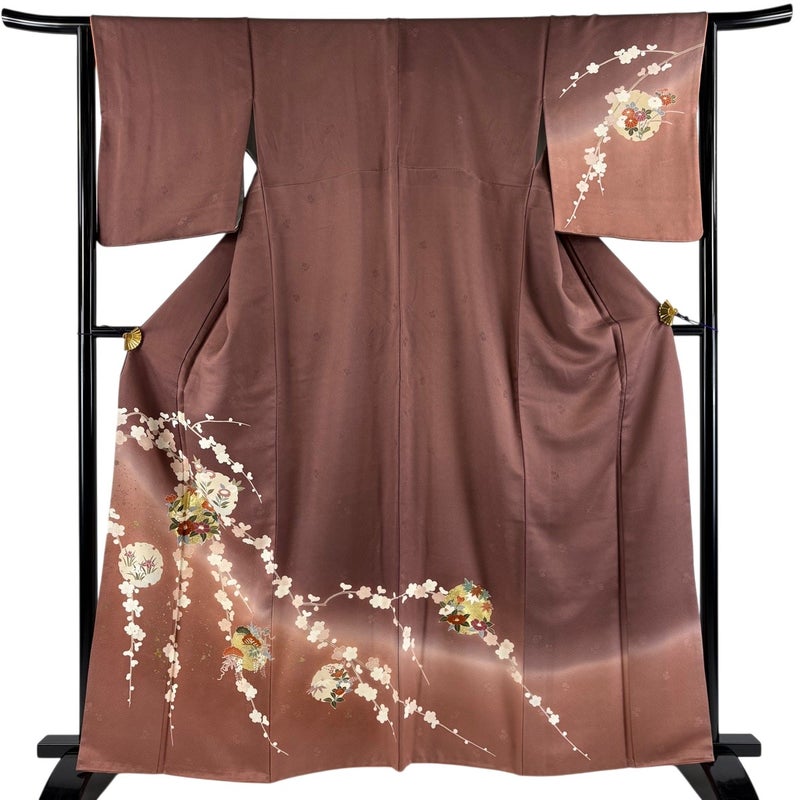 【訪問着】 赤系 小豆色 秀品 B 約160cm~約169cm 裄丈65cm (M)size 袖丈49cm 7990-9980 二万以下
