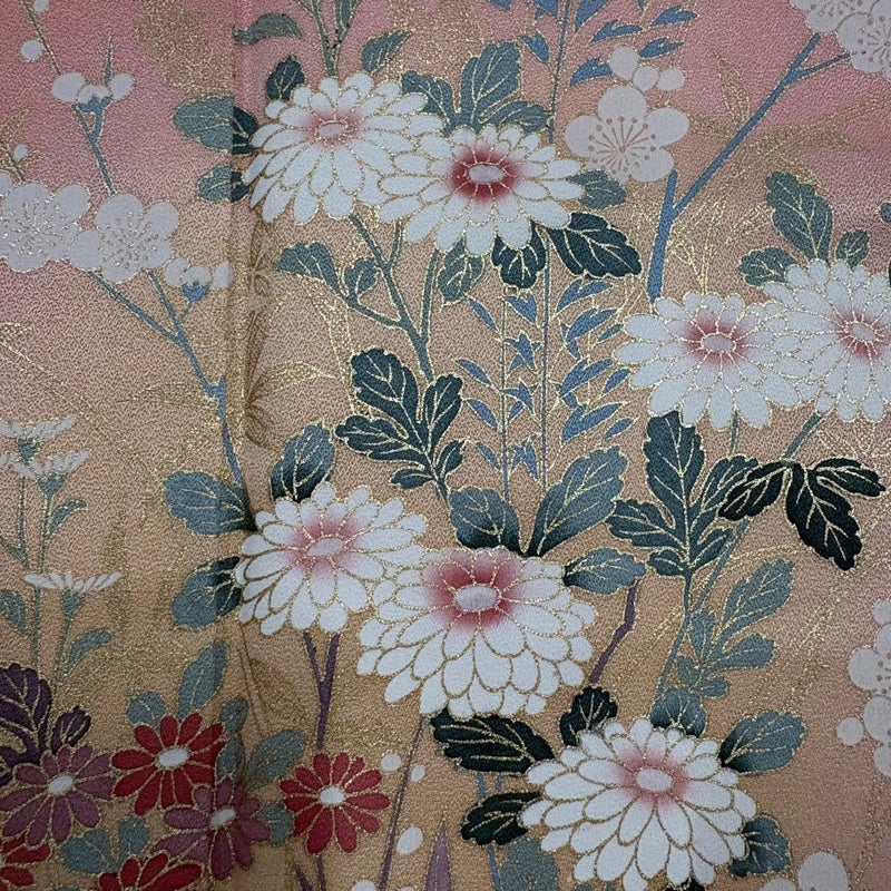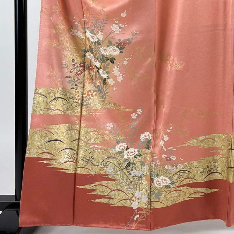 【着物ランク】秀品 【素材】正絹 【身丈】約164cm 【裄丈】約66cm 【袖丈】約48.5cm 【袖幅】約34cm 【前幅】約24.5cm 【後幅】約29cm 【サイズ】M 【着物仕立て】袷 【着用時期】10~5月 【状態ランク】ランクB 【着物着用シーン】披露宴、パーティー、お見合い、式典、茶会