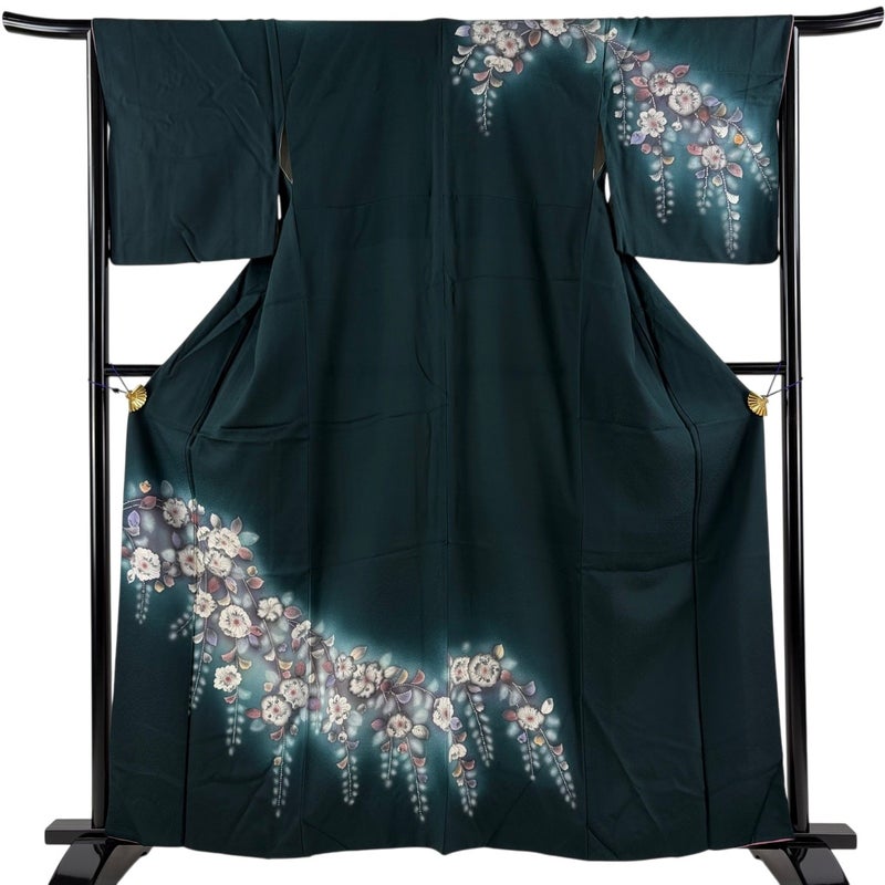 【着物ランク】秀品 【素材】正絹 【身丈】約161cm 【裄丈】約66cm 【袖丈】約48.5cm 【袖幅】約34.5cm 【前幅】約24cm 【後幅】約30cm 【サイズ】M 【着物仕立て】袷 【着用時期】10~5月 【状態ランク】ランクB 【着物着用シーン】披露宴、パーティー、お見合い、式典、茶会