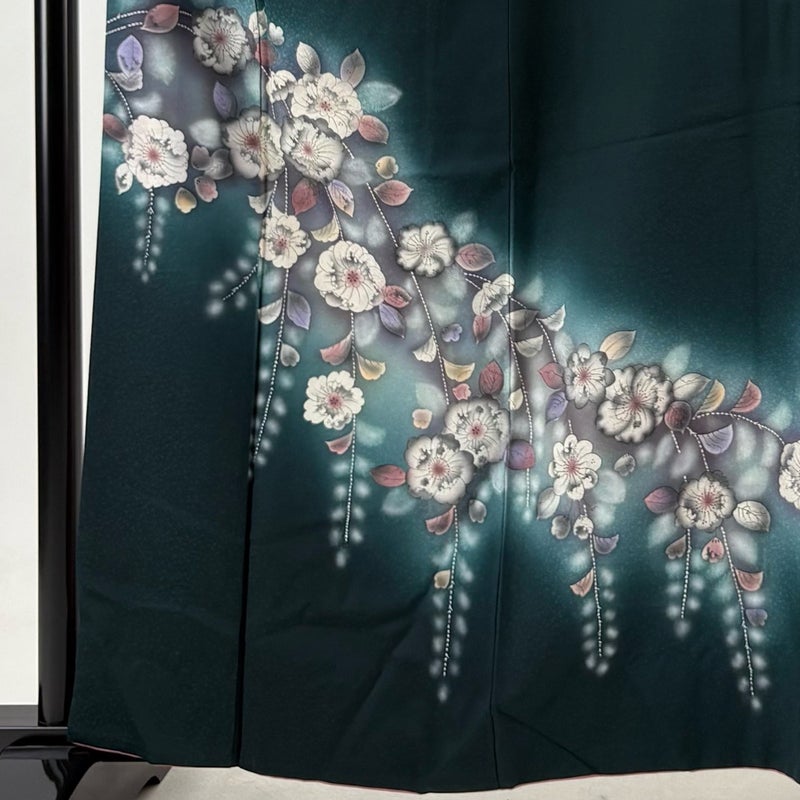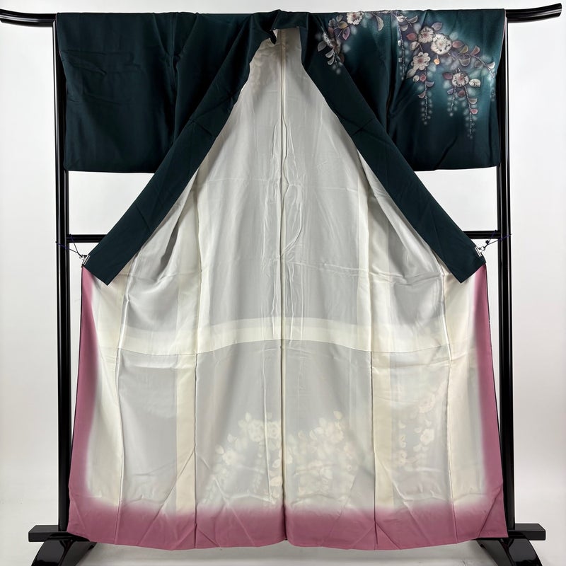 【訪問着】 緑系 深緑 秀品 B 約160cm~約169cm 裄丈66cm (M)size 袖丈48cm 7990-9980 二万以下