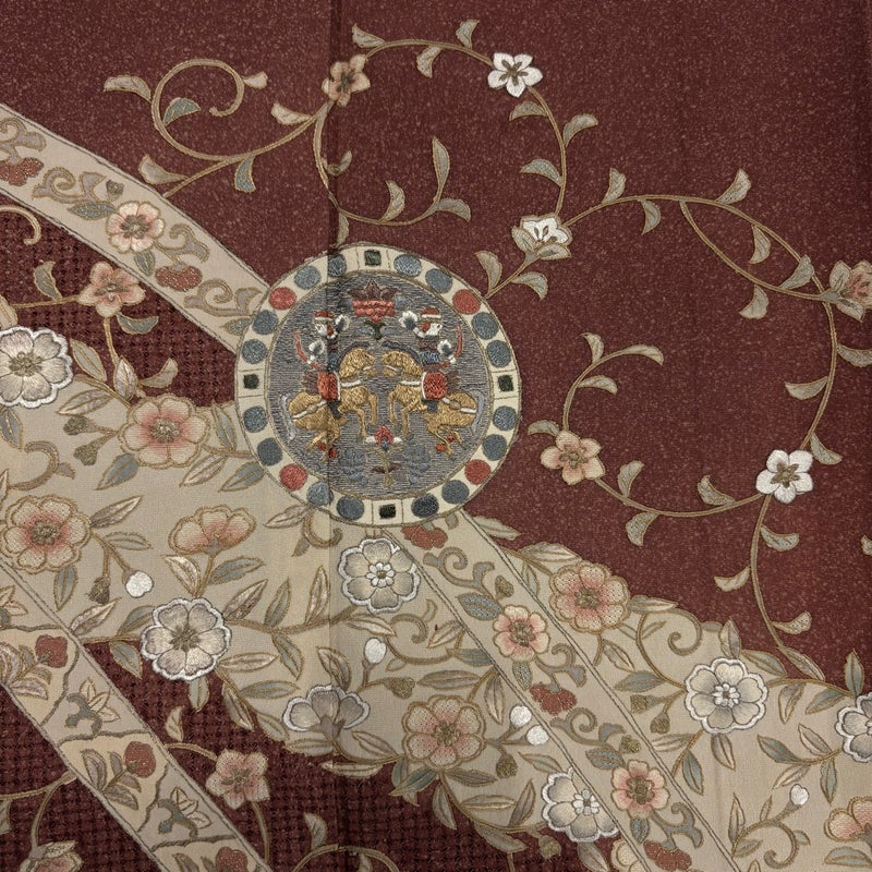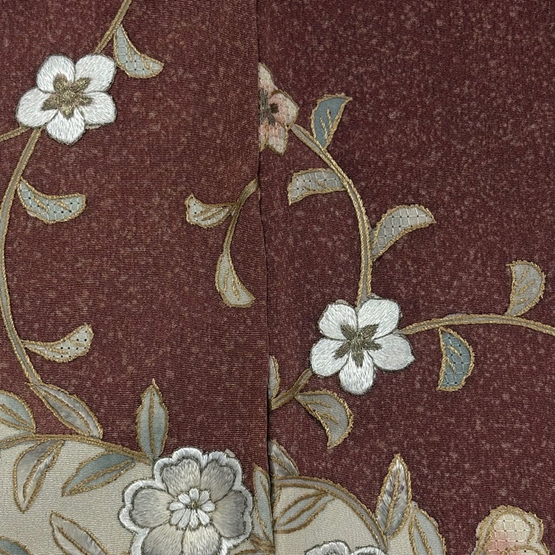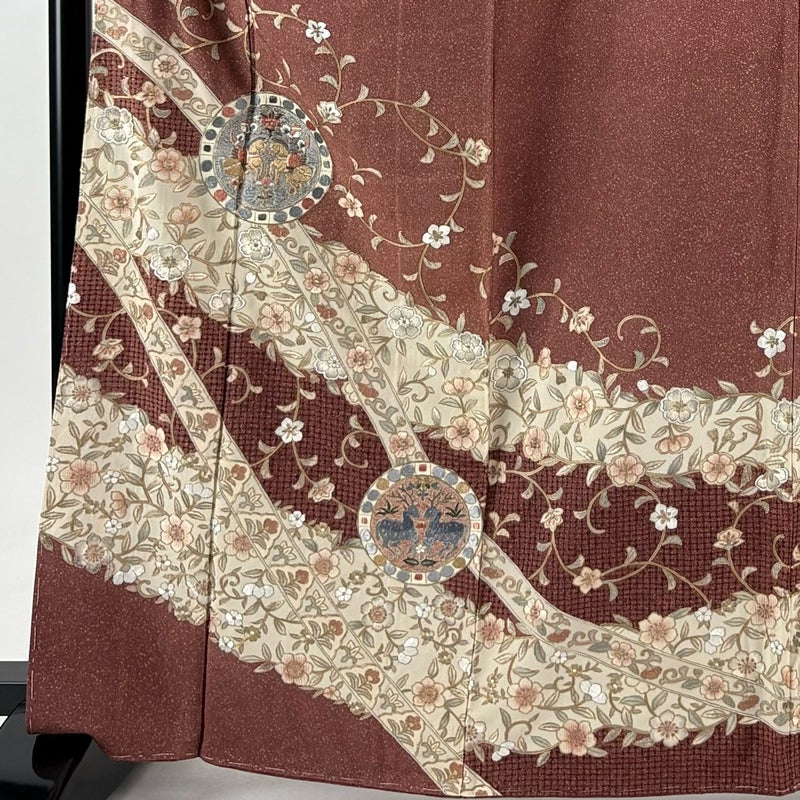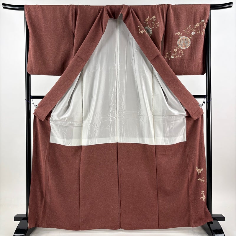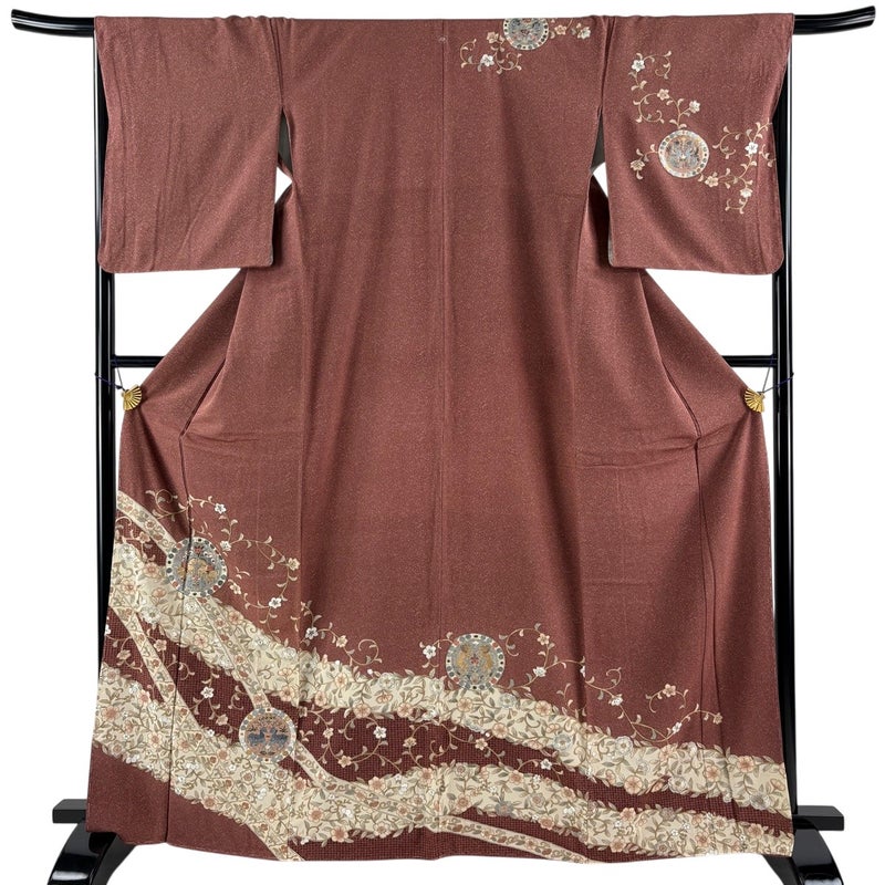 【訪問着】 赤系 小豆色 秀品 B 約160cm~約169cm 裄丈66cm (M)size 袖丈50cm-60cm 7990-9980 二万以下