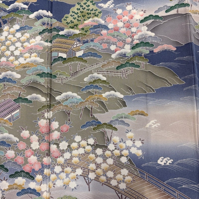 【訪問着】 灰色系 青灰色 秀品 B 約160cm~約169cm 裄丈63cm-64cm (M)size 袖丈49cm 7990-9980 二万以下