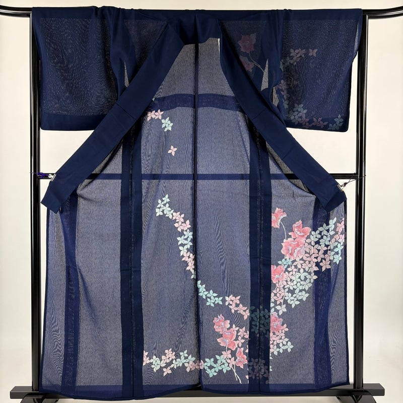 【訪問着】 青系 濃紺 秀品 B 約160cm~約169cm 裄丈66cm (M)size 袖丈49cm 9990-29990 二万以下