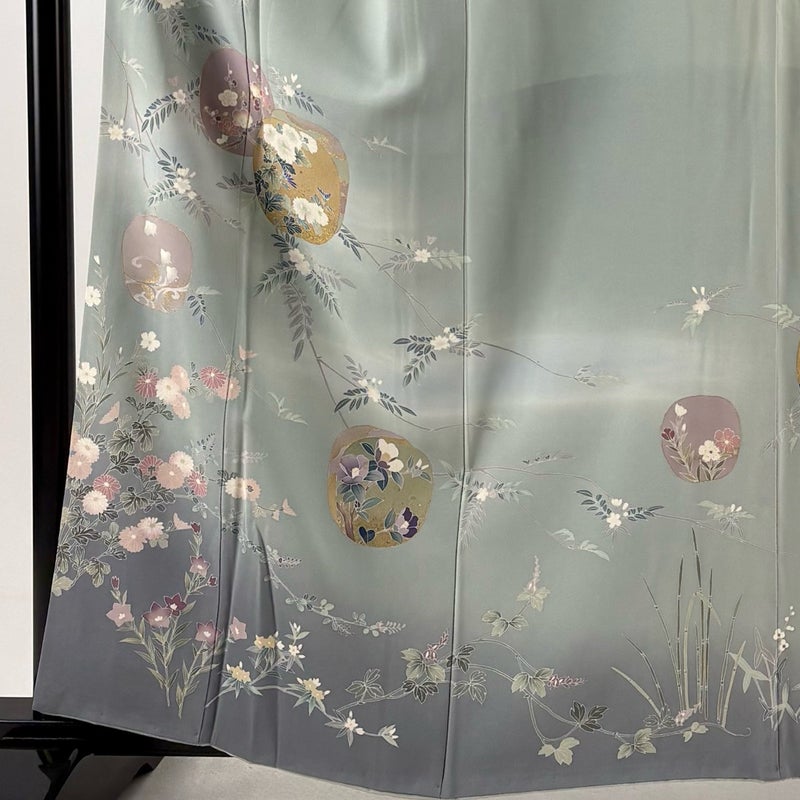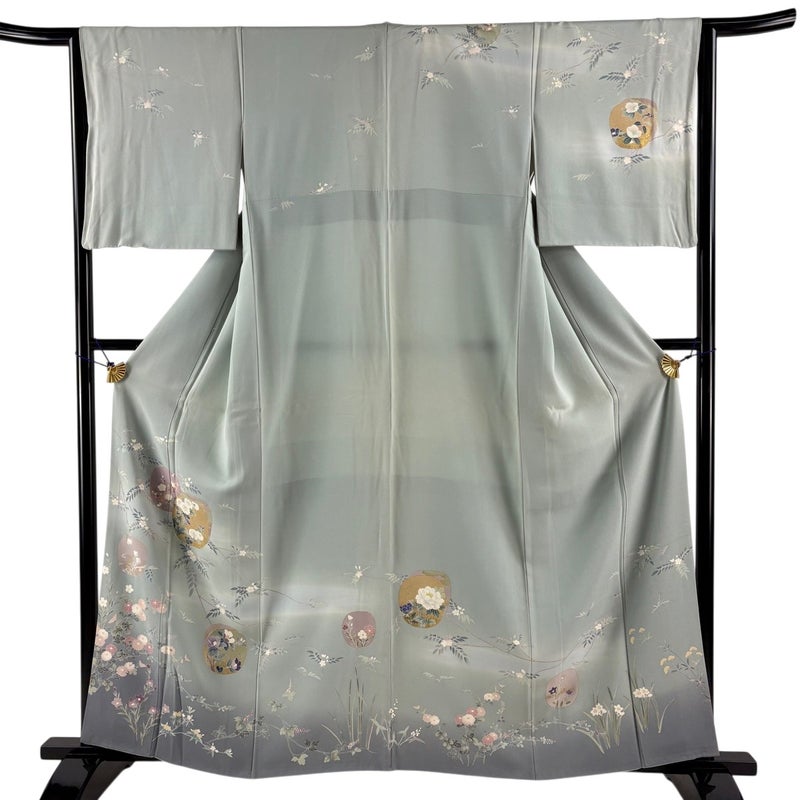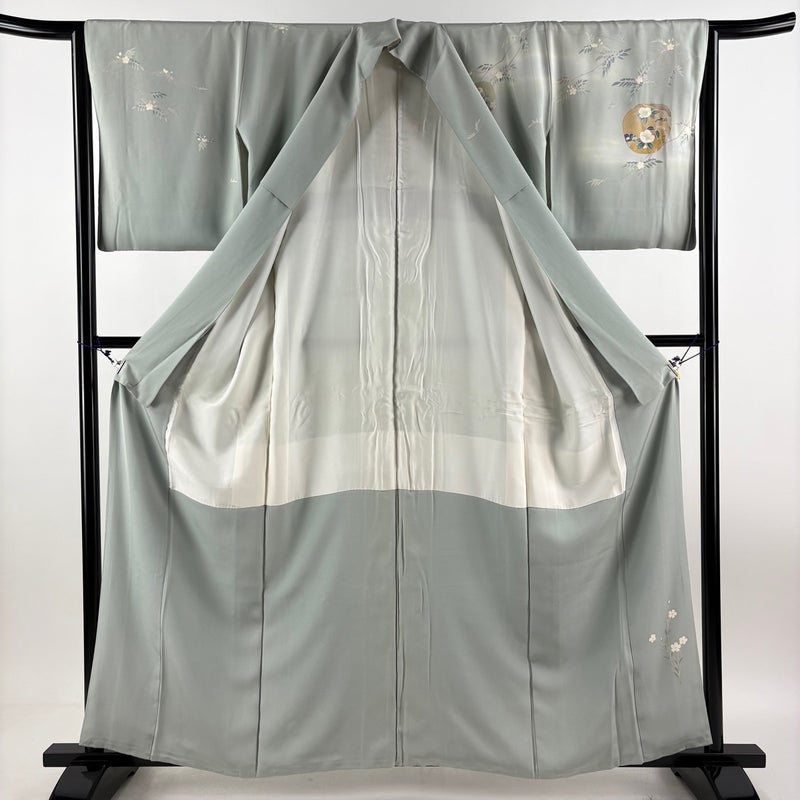 【訪問着】 灰色系 灰緑 秀品 C 約150cm~約159cm 裄丈63cm-64cm (M)size 袖丈47cm 7990-9980 二万以下
